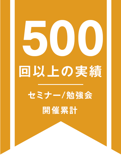 定例会10回(2コマ)+勉強会10回×19年という計算で累計500回以上のセミナーを開催。時代に沿った内容から不易流行の経営の話まで様々なセミナーを開催しています。