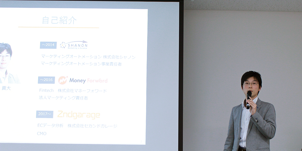 セカンドガレージでは取締役 CMOとして、データ活用サービス「Fast for EC」のマーケティングを担当すると共に、データドリブンマーケティングの啓蒙を行っている。